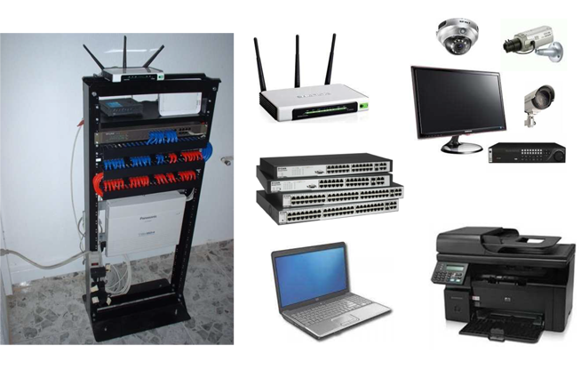 * Administración de la red de   computadores, servidores e impresoras   en hardware y software.